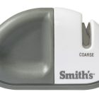 - COMPACT – Smith’s Edge Grip Basic Single Stage Sharpener is small but mighty! It measures 3.8” x 1.3” x 2.15” and is easy to store even with limited kitchen space.