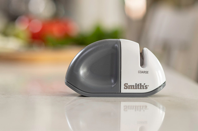 - KNIFE SHARPENER – Smith’s Edge Grip features a single carbide blade sharpening slot that will sharpen dull and damaged straight edge blades.